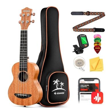 Donner Soprano Ukulele Mahogany 21 inch Ukelele Beginner Kit